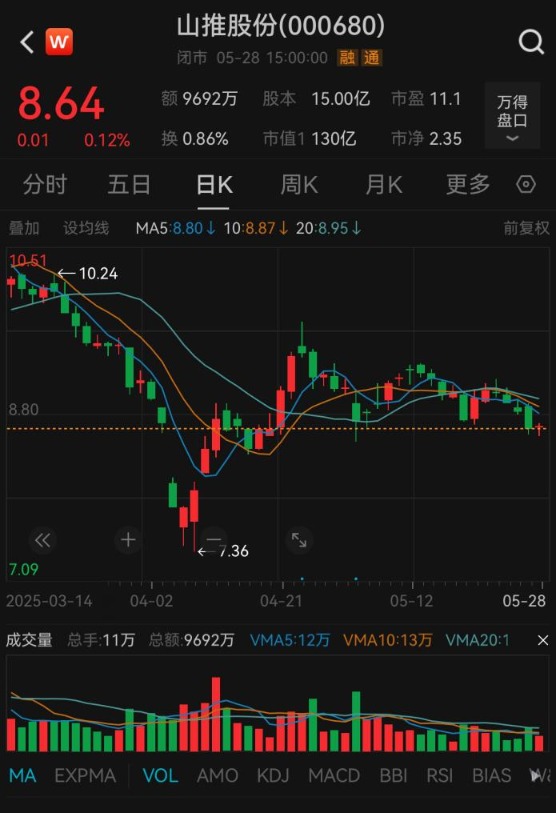 5月28日,山推股份股价以8.64元/股报收,市值为130亿元。