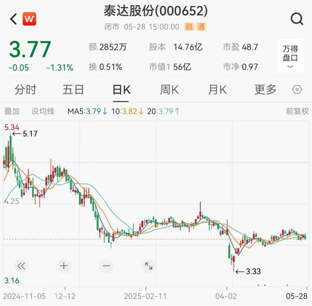截至5月28日收盘,泰达股份报3.77元/股股票配资入门平台,总市值为56亿元。